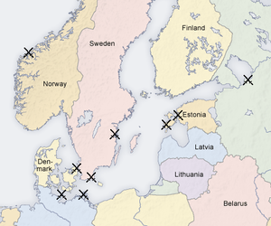 Locations of Eric's battles and raids in Scandinavia and the Baltic.